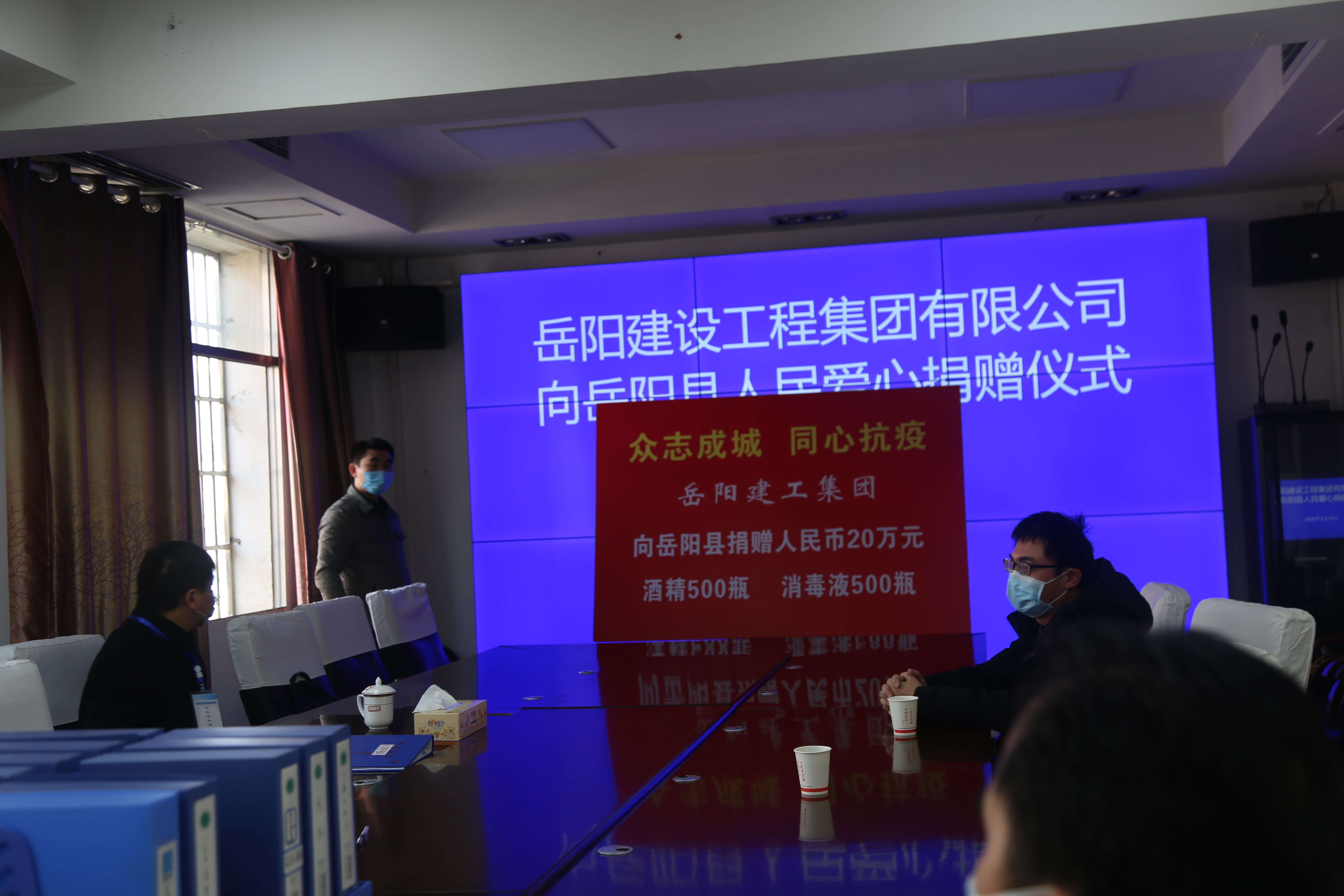 2月13日上午,公司總經(jīng)理鄧亮代表公司向岳陽市南湖新區(qū)突發(fā)公共衛(wèi)生事件應急指揮部捐贈人民幣40萬元、75%酒精1000瓶、消毒液600瓶及口罩500只。南湖新區(qū)副調(diào)研員、區(qū)財政局局長毛晉鋒代表區(qū)工委、管委會對岳陽建工集團及其員工的愛心表示衷心感謝,他表示,岳陽建工集團的善舉有效緩解了抗疫一線緊缺的難題,更給廣大一線疫情防控工作人員精神上莫大的鼓舞和支持,讓大家更堅定了戰(zhàn)勝疫情的勇氣和信心。