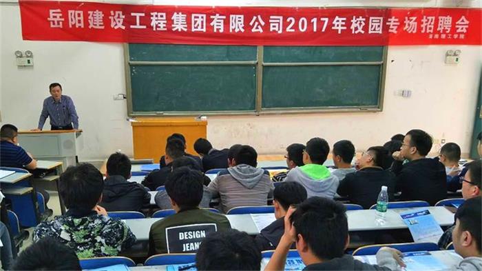 4月14日下午,公司2017年校園專場招聘會在湖南理工學(xué)院土木工程學(xué)院舉行,公司領(lǐng)導(dǎo)王立新、行政副總楊毅、總工程師周一波、理工學(xué)院優(yōu)秀畢業(yè)生代表公司項目經(jīng)理巢廣槐等職能部門負(fù)責(zé)人一行10人代表公司參會。公司領(lǐng)導(dǎo)王立新在招聘會現(xiàn)場表示:“隨著集團公司的快速發(fā)展,我們對人才的渴望、需求也在提檔加速,應(yīng)屆畢業(yè)生是集團公司人才儲備的主要來源之一,湖南理工學(xué)院是湘北名校,其土木工程學(xué)院培養(yǎng)建筑類人才富有傳統(tǒng),與擁有50多年發(fā)展歷程培養(yǎng)了一批又一批本土優(yōu)秀建筑人才的集團公司一脈相承、相得益彰。我們熱烈期望你們能加入岳陽建工集團,加入意味著全新的開始,集團愿意給你們在公司5至8年的黃金發(fā)展期,但真誠期望你們一定要還我們一個真材實料的建筑人才”。