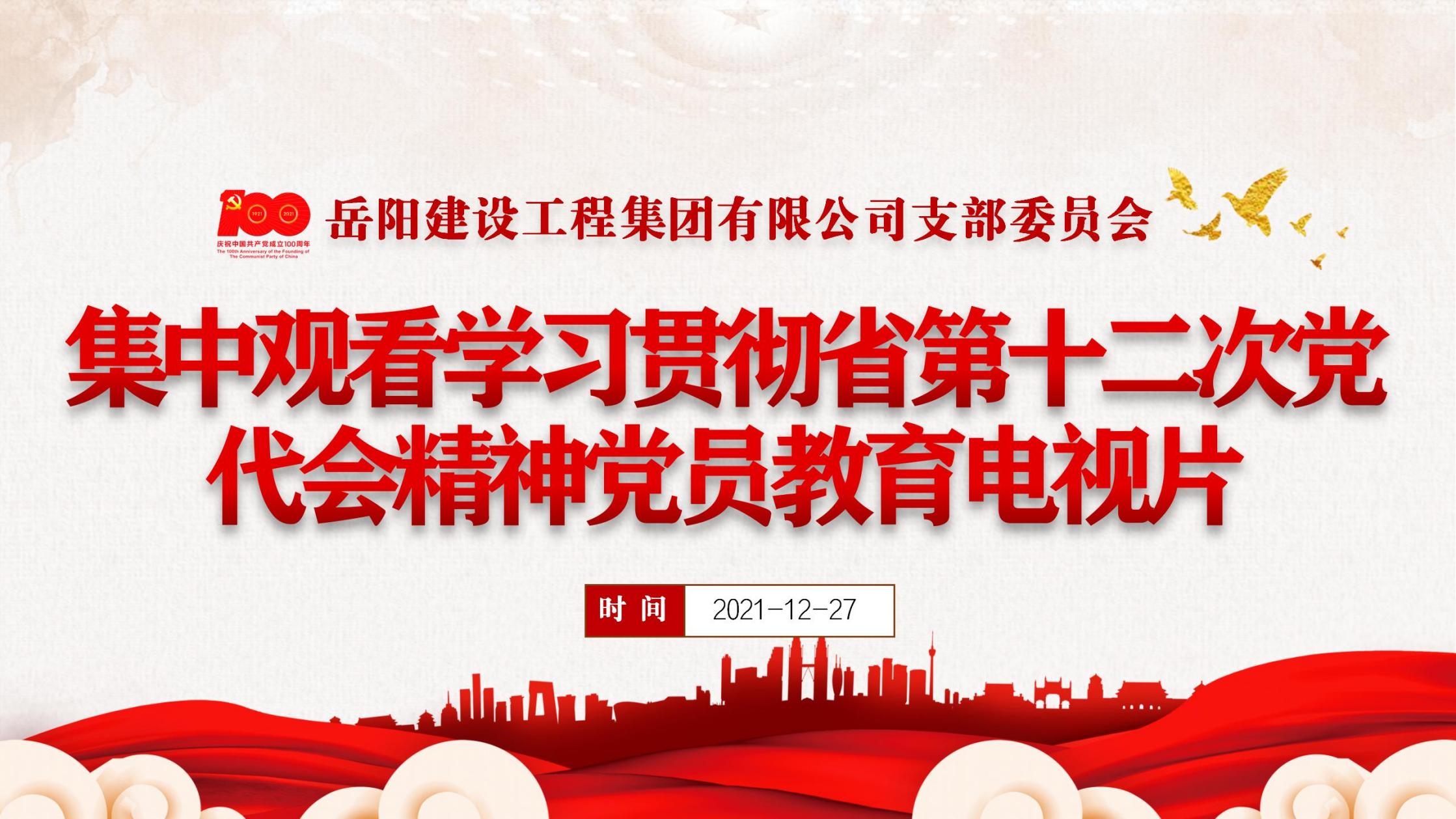 為進(jìn)一步落實(shí)《中共湖南省委組織部關(guān)于組織全省黨員開展學(xué)習(xí)貫徹省第十二次黨代會(huì)精神集中培訓(xùn)的通知》精神,2021年12月27日上午9:00,岳陽建工集團(tuán)黨支部組織全體黨員集中觀看學(xué)習(xí)貫徹湖南省第十二次黨代會(huì)精神黨員教育電視片。