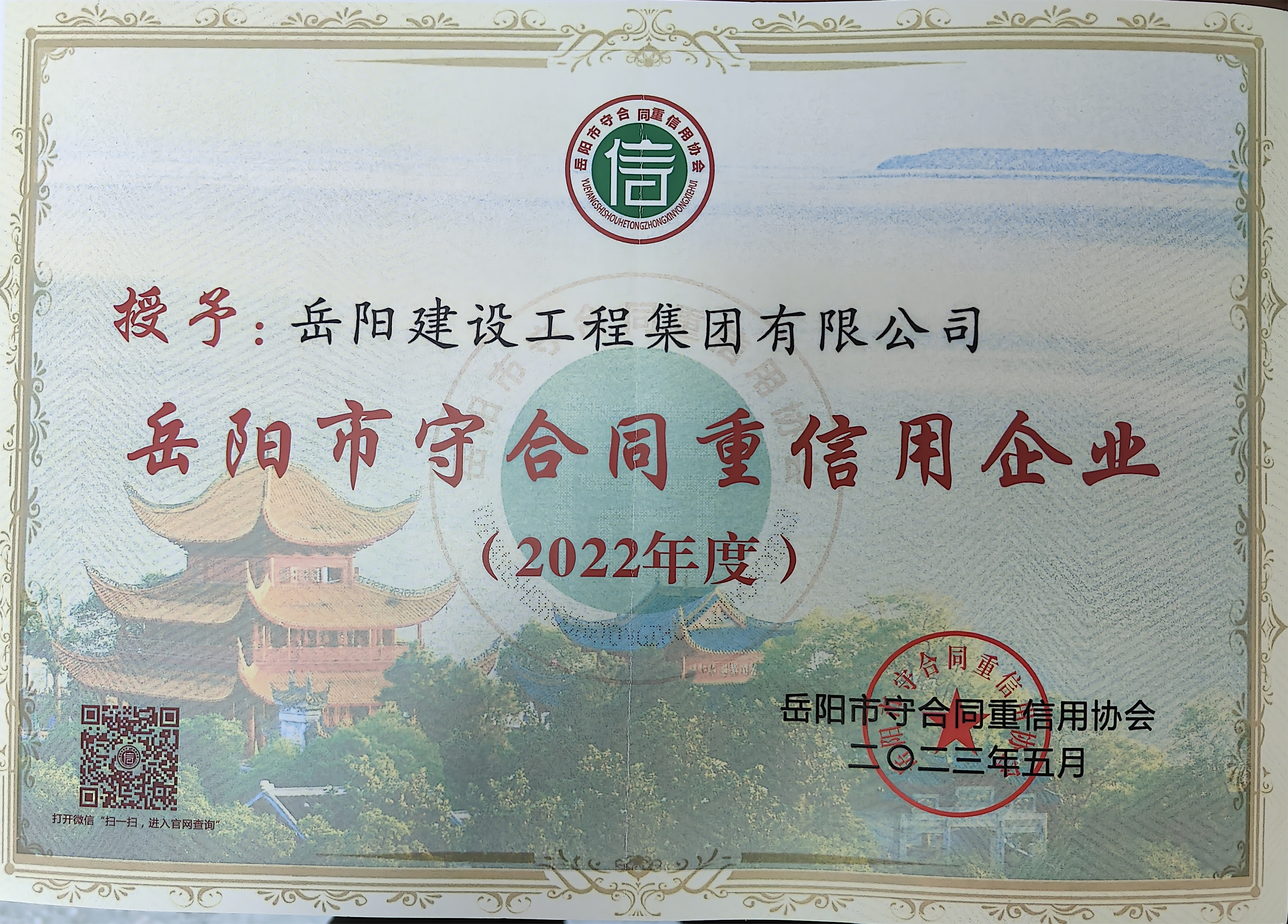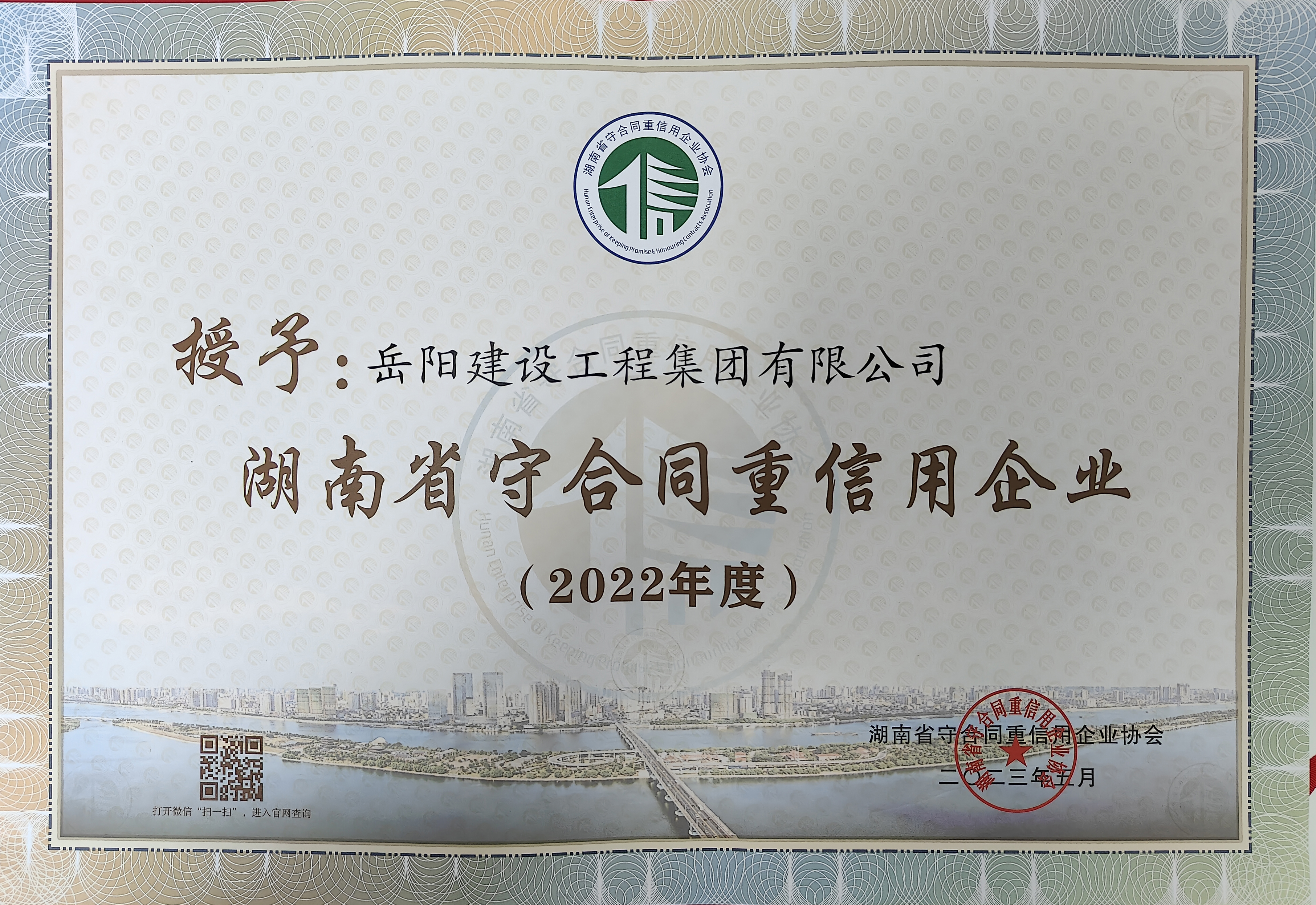 日前,公司被湖南省守合同重信用協(xié)會(huì)評(píng)為2022年度“湖南省守合同重信用企業(yè)”,被岳陽(yáng)市守合同重信用協(xié)會(huì)評(píng)為2022年度“岳陽(yáng)市守合同重信用企業(yè)”。