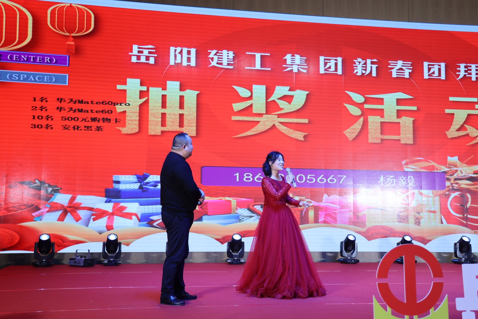 隨后,全體人員歡聚一堂,觀看了由公司員工組織的文藝匯演。 伴隨著鼓舞的熱鬧開場,2024年新春年會文藝匯演在歡樂的氛圍中正式拉開帷幕。整臺晚會內容豐富,精彩紛呈,歌曲、舞蹈等一個個節(jié)目銜接緊湊,燈光、音響配合完美。最激動人心的是穿插在節(jié)目表演過程中一、二、三等獎及紀念獎的抽取活動,將現(xiàn)場氣氛一次次推向高潮,幸運的員工獲得了公司精心準備的華為手機、購物卡、安化黑茶、紅包雨等禮物。整個現(xiàn)場氣氛熱烈、歡快,大家頻頻舉杯,相互祝愿。