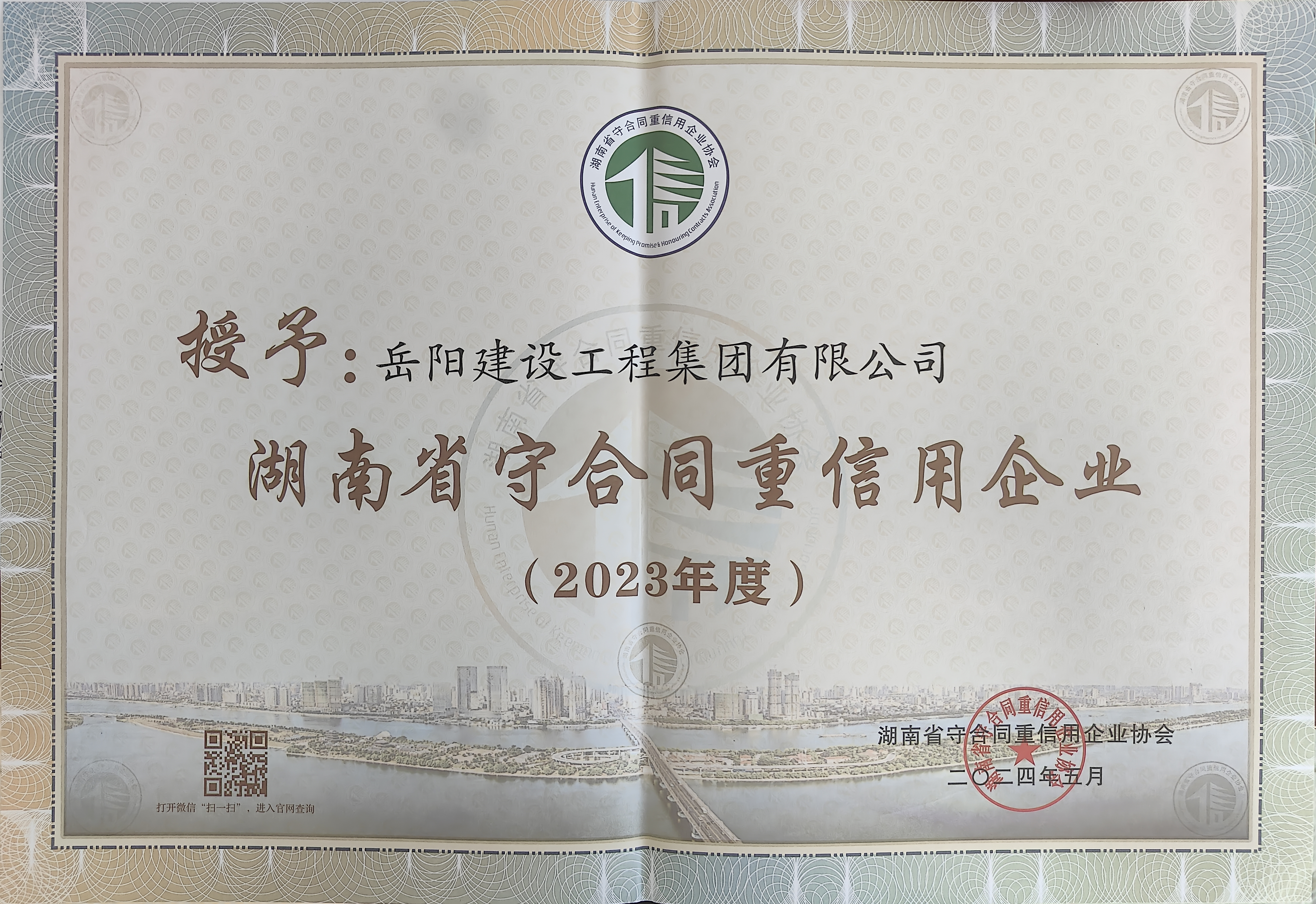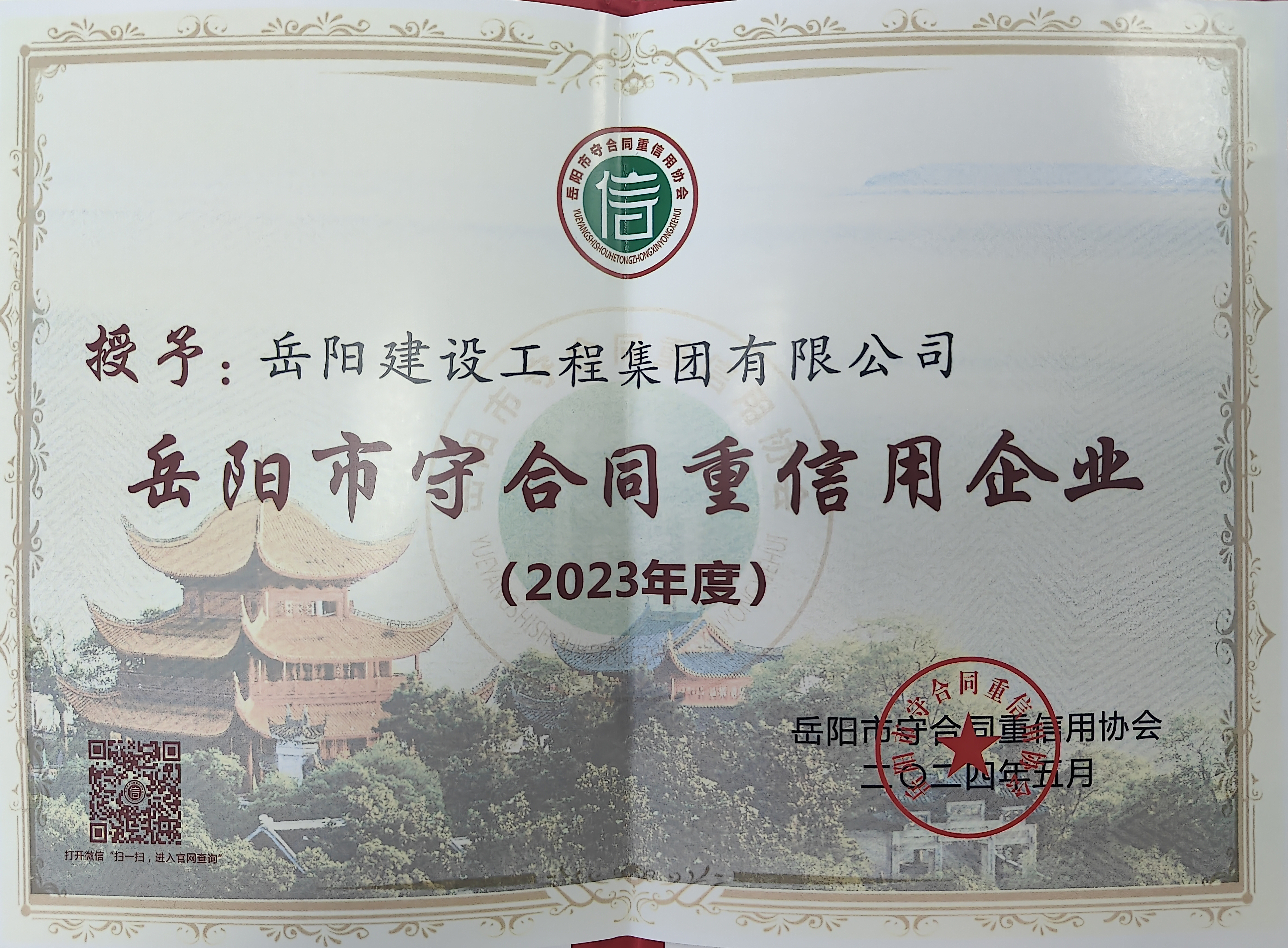 日前,在2023年度湖南省守合同重信用企業(yè)發(fā)布儀式上,公司獲評(píng)"湖南省守合同重信用企業(yè)",同時(shí)獲評(píng)2023年度"岳陽(yáng)市守合同重信用企業(yè)"。
